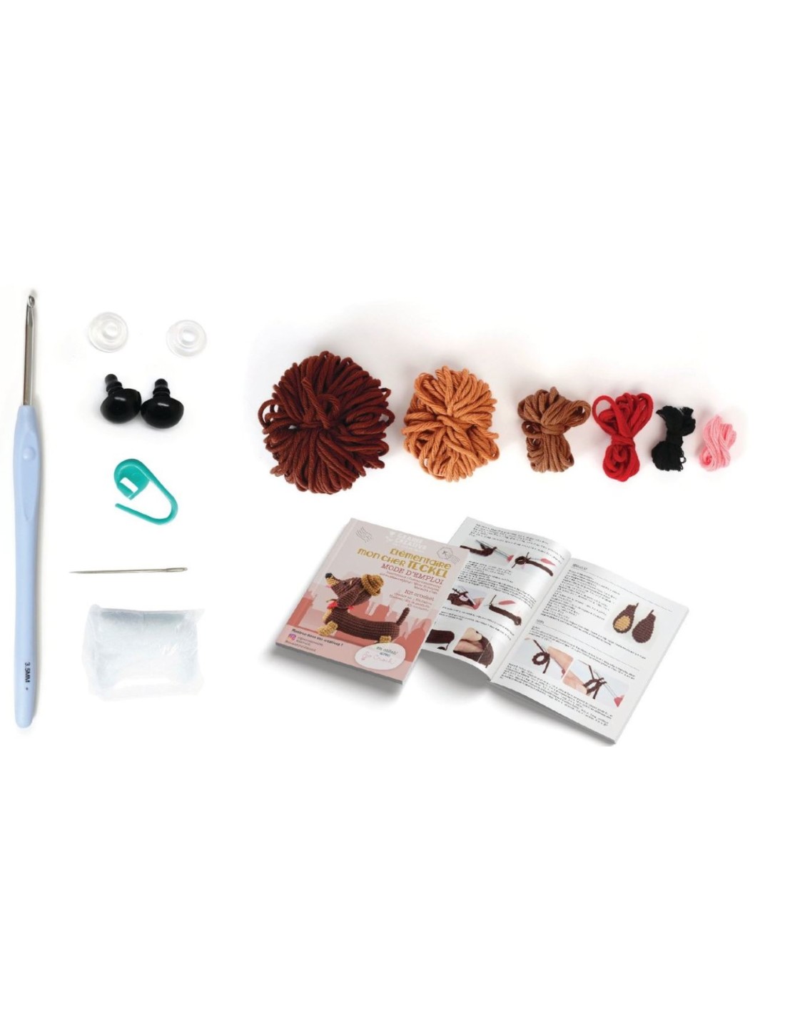 Confectionnez cette jolie poupée en crochet et son petit sac à dos avec ce kit complet !Kit en collaboration avec la créatrice de Ligne Rétro.