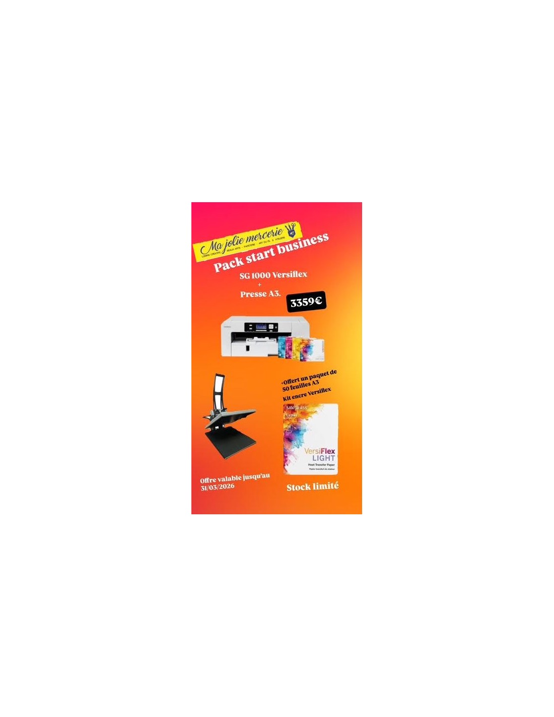 kit d'impression Sawgrass qui combine la sublimation traditionnelle (textile polyester, mug etc) avec la possibilité de réaliser des transferts sur textile coton clair grâce au nouveau papier VersiFlex et à son expander : le pack VersiFlex SG1000, spécialement conçu pour la personnalisation de textiles et d’objets.