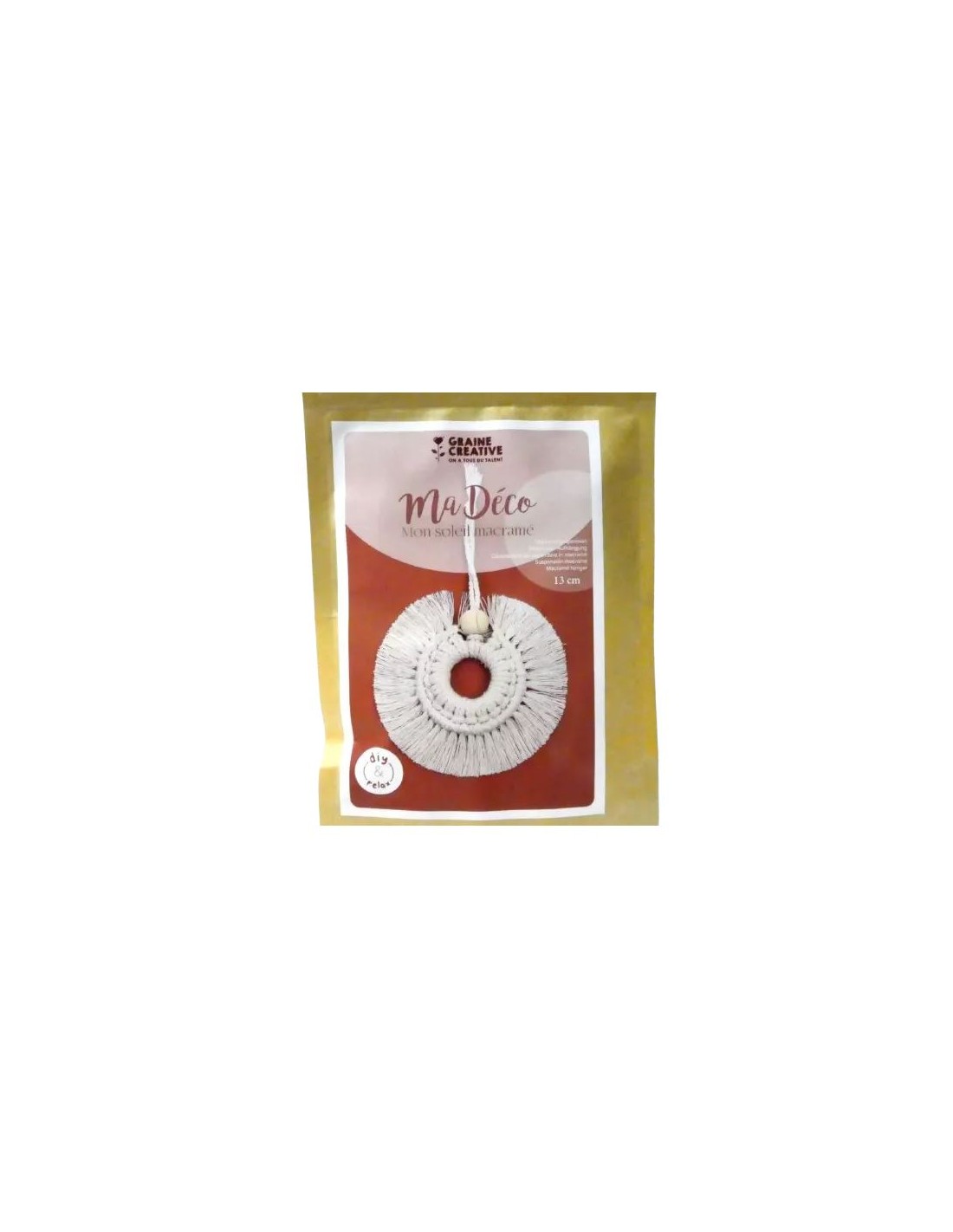 Réalisez une magnifique décoration soleil en macramé grâce à ce kit créatif macramé GRAINE CRÉATIVE. Idéal pour les amateurs de DIY et loisirs créatifs, ce kit permet de fabriquer facilement une déco murale bohème en macramé de 13 cm.