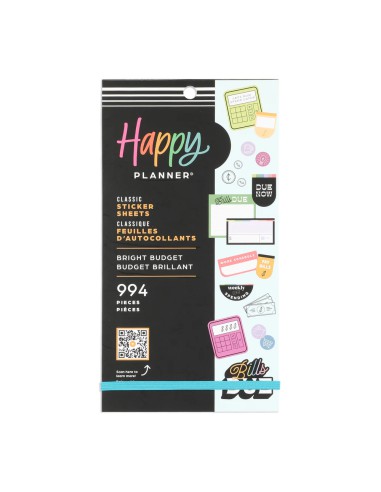 Sauvegarder maintenant. Dépensez plus tard. Ce livre d'autocollants Happy Planner Value Pack comprend 30 feuilles avec 994 autocollants. Ajoutez ces autocollants à votre Happy Planner, journal guidé, carnet, Memory Keeping Journal ou bullet journal pour vous aider à prioriser vos tâches et à décorer vos planches ! Créez des planches économiques avec des autocollants qui ajoutent une fonction et une organisation financières.